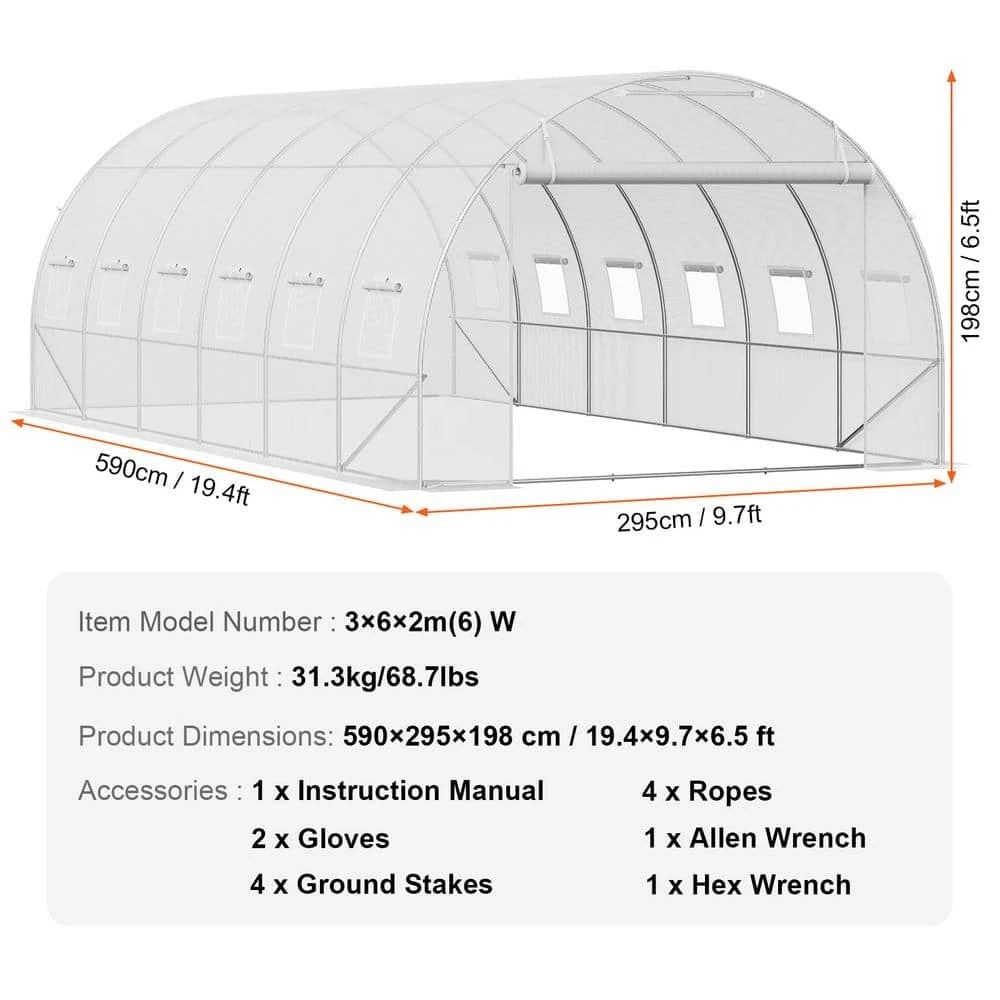 - Spacious walk-in design: with a spacious 19.36 x 9.68 x 6.50 ft. area, this walk-in greenhouse tunnel is ideal for a variety of plant needs, it allows easy management and maintenance, and accommodates multiple plant shelves, making it ideal for both home and commercial gardening