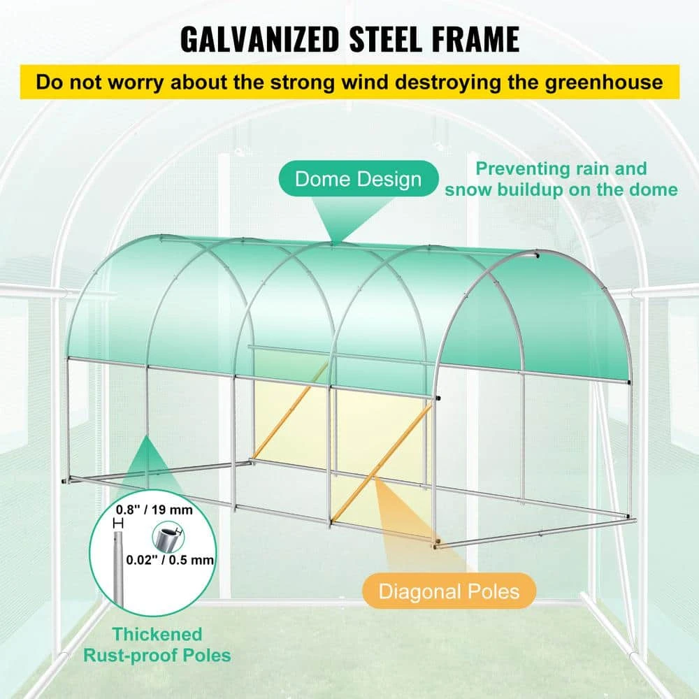 - Upgraded galvanized frame: we upgraded he galvanized steel to 0.8 in. Dia and 0.02 in. thickness this high tunnel greenhouse has 3 top beams to prevent rain and snow buildup on the dome moreover, the diagonal poles can ensure stability during extreme weather we have got you covered, so get ready to see your crops grow all year round